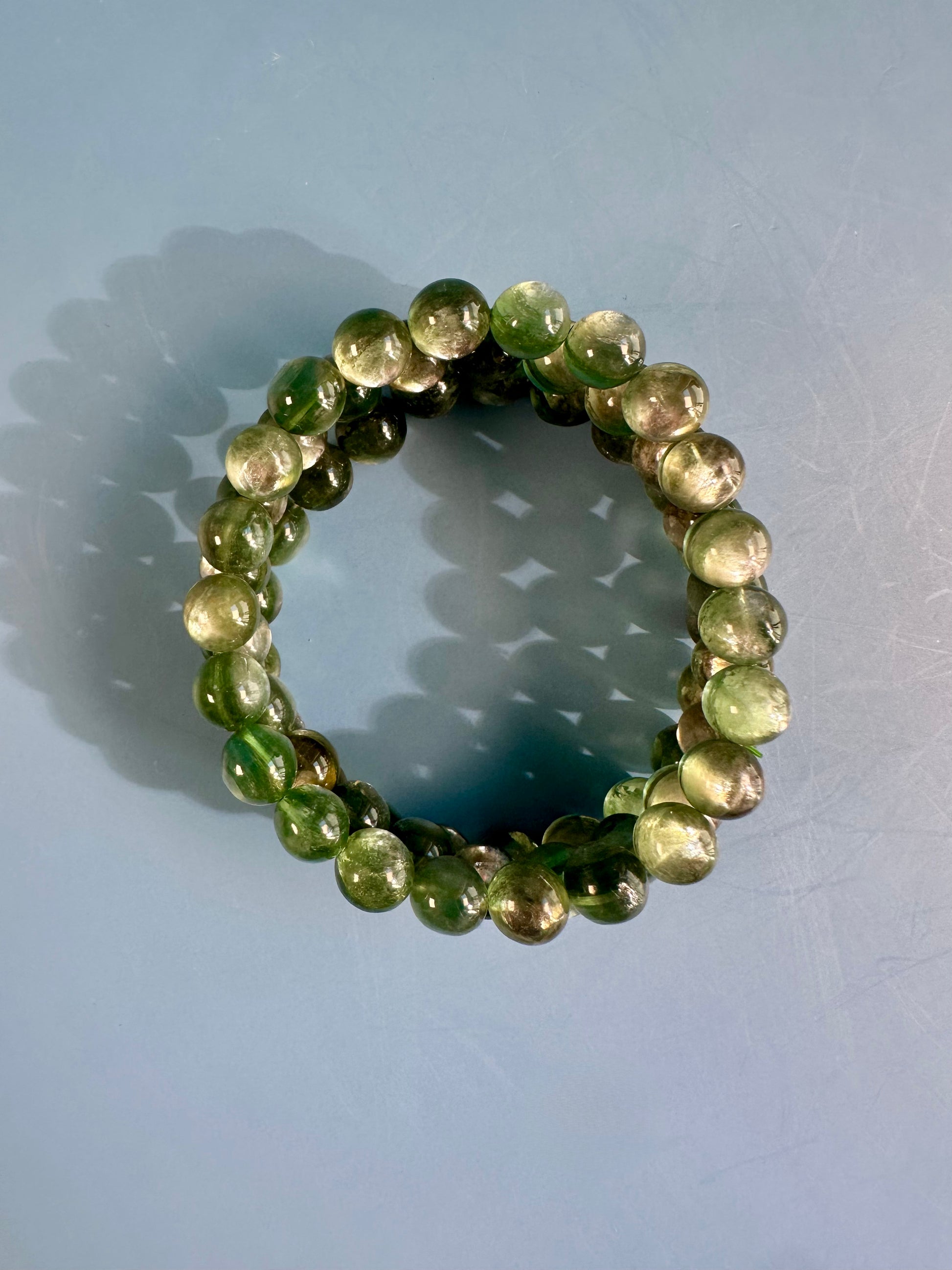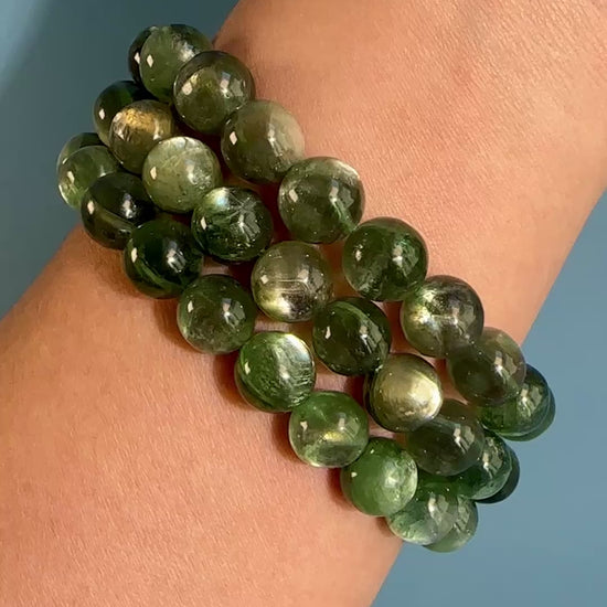 You will receive 1 intuitively chosen 10mm Green Mica Beaded Bracelet.