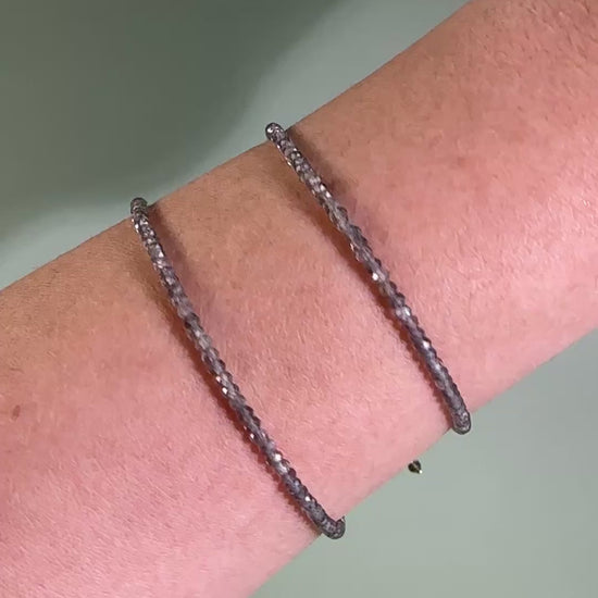 2mm Faceted Smokey Quartz Bracelet with 925 Silver Adjustable Extender