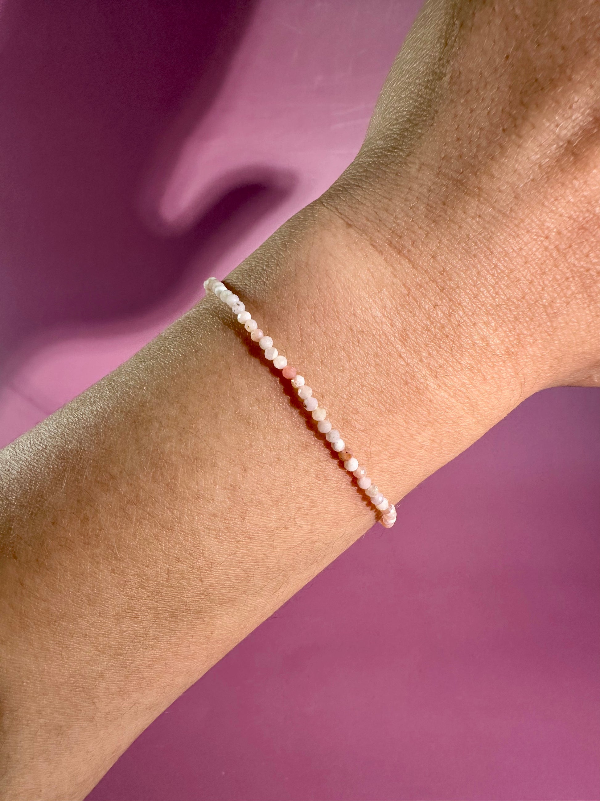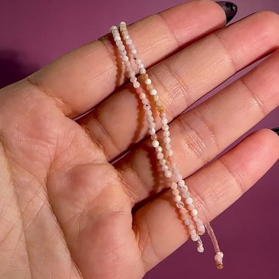 You will receive 1 (one) intuitively chosen 2mm Rhodochrosite Adjustable Beaded Bracelet. Soft pink tones create a loving, nurturing feel.