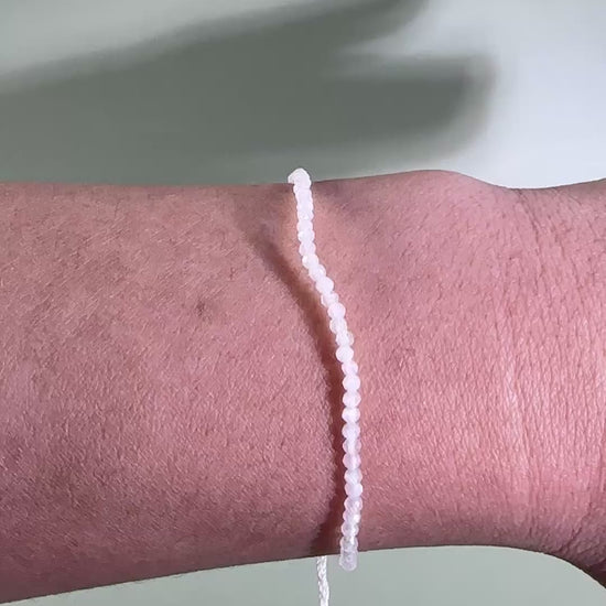 This delicate bracelet features tiny Moonstone beads on an adjustable cord, offering a subtle shimmer perfect for minimal, everyday wear.