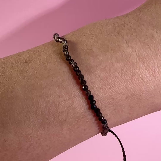 2mm Smokey Quartz Adjustable Beaded Bracelet