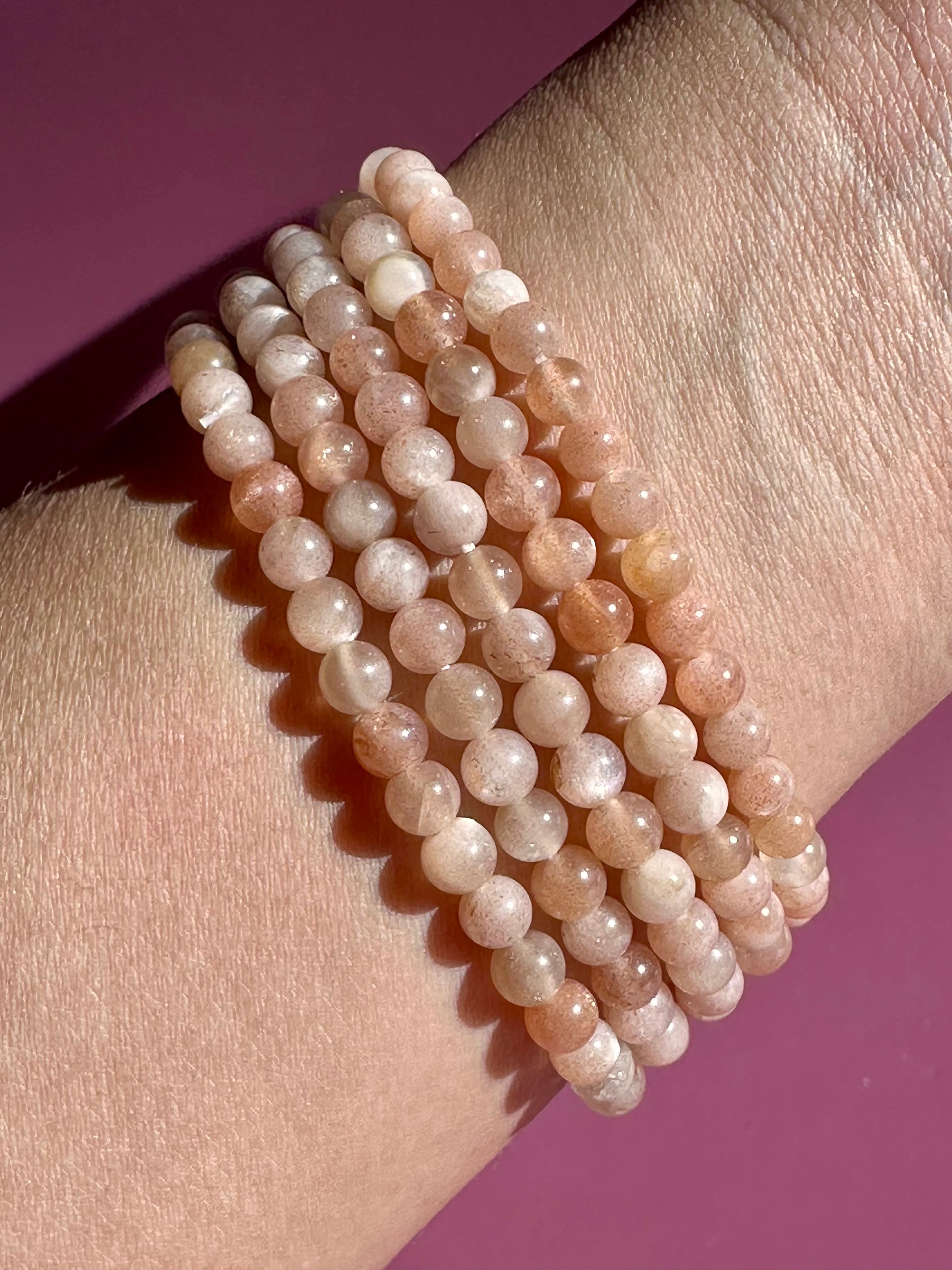 4mm Sunstone + Moonstone Beaded Bracelet
