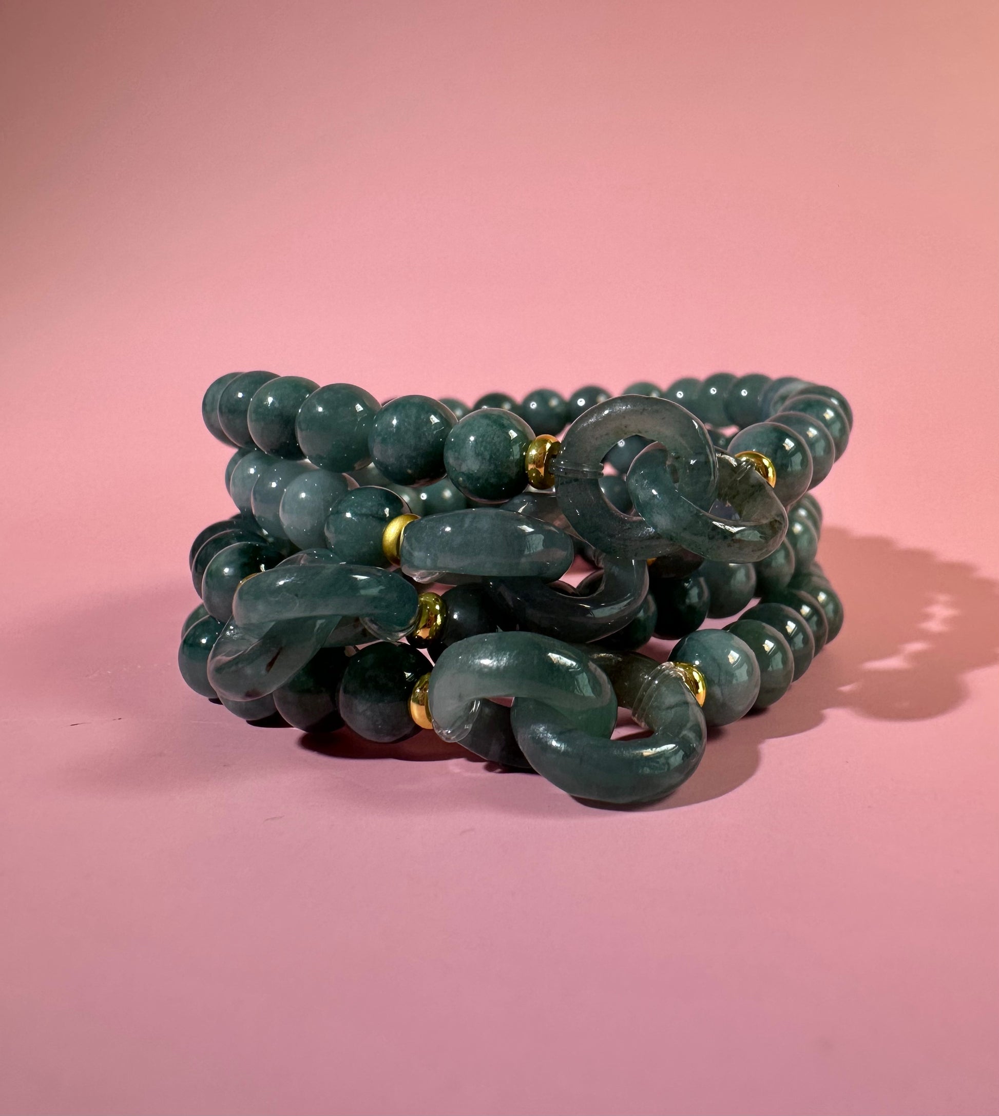This bracelet features soothing blue-green hues with a polished finish, offering a tranquil and elegant look that pairs beautifully with both silver and gold-toned jewelry.