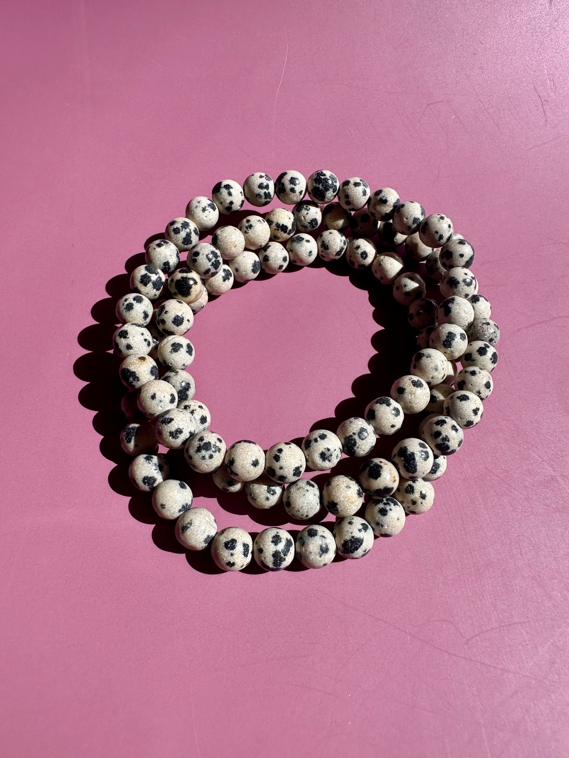 You will receive 1 intuitively chosen 6mm Dalmatian Jasper Beaded Bracelet.