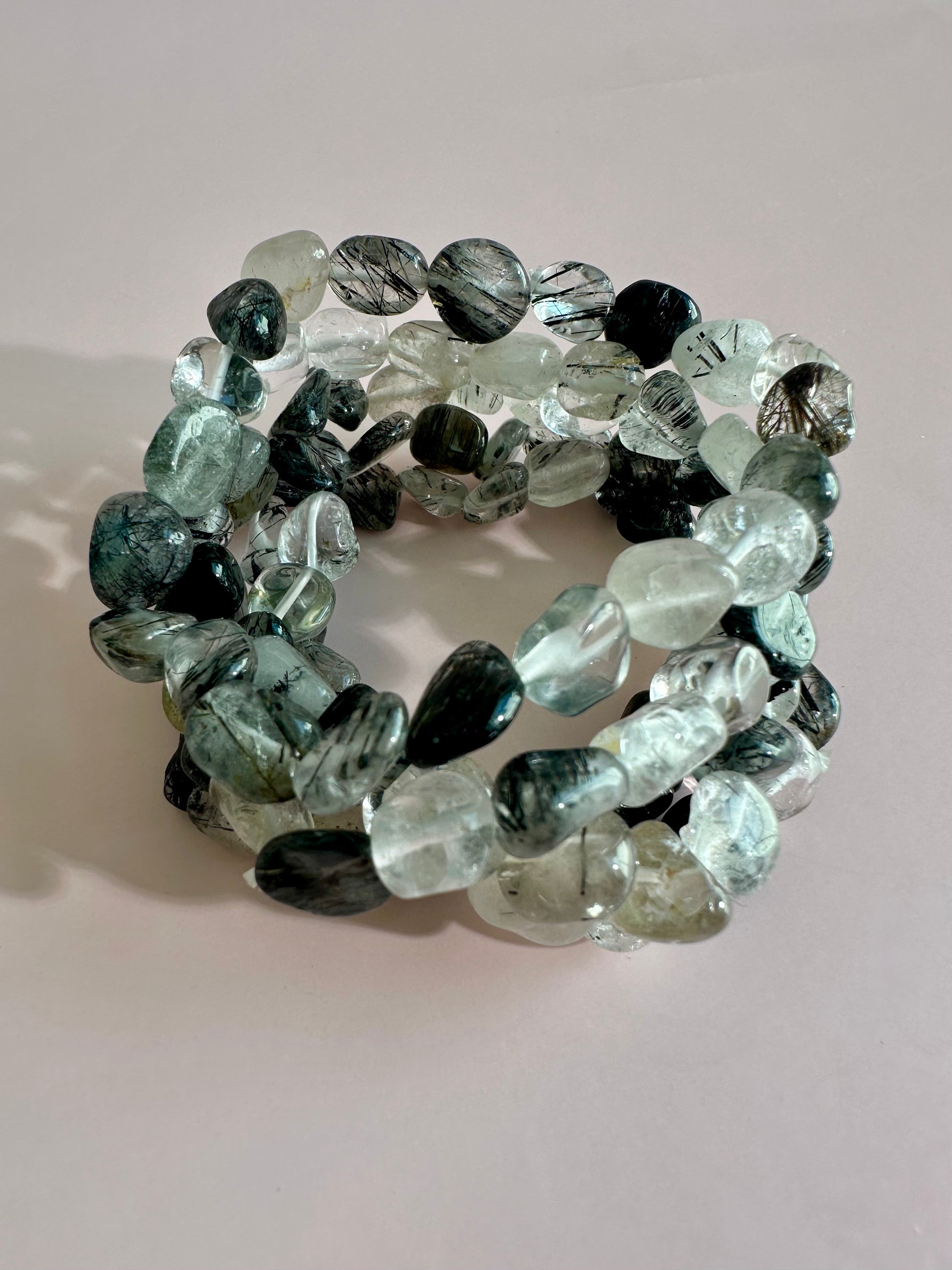 You will receive 1 intuitively chosen 8mm Black Rutile Quartz (Black Tourmaline in Quartz) Polished Bracelet.