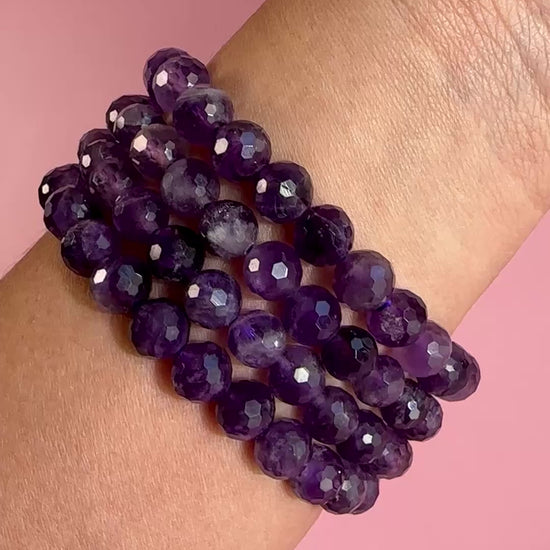 You will receive 1 intuitively chosen 8mm Faceted Amethyst Beaded Bracelet.