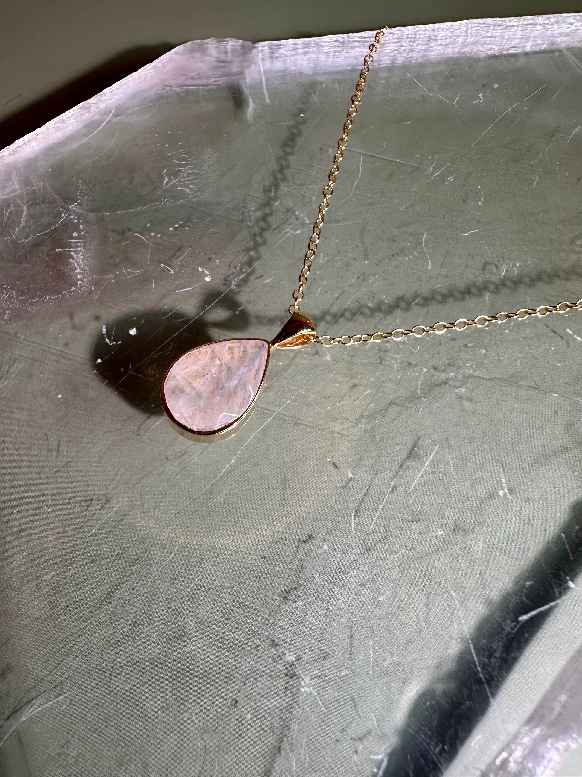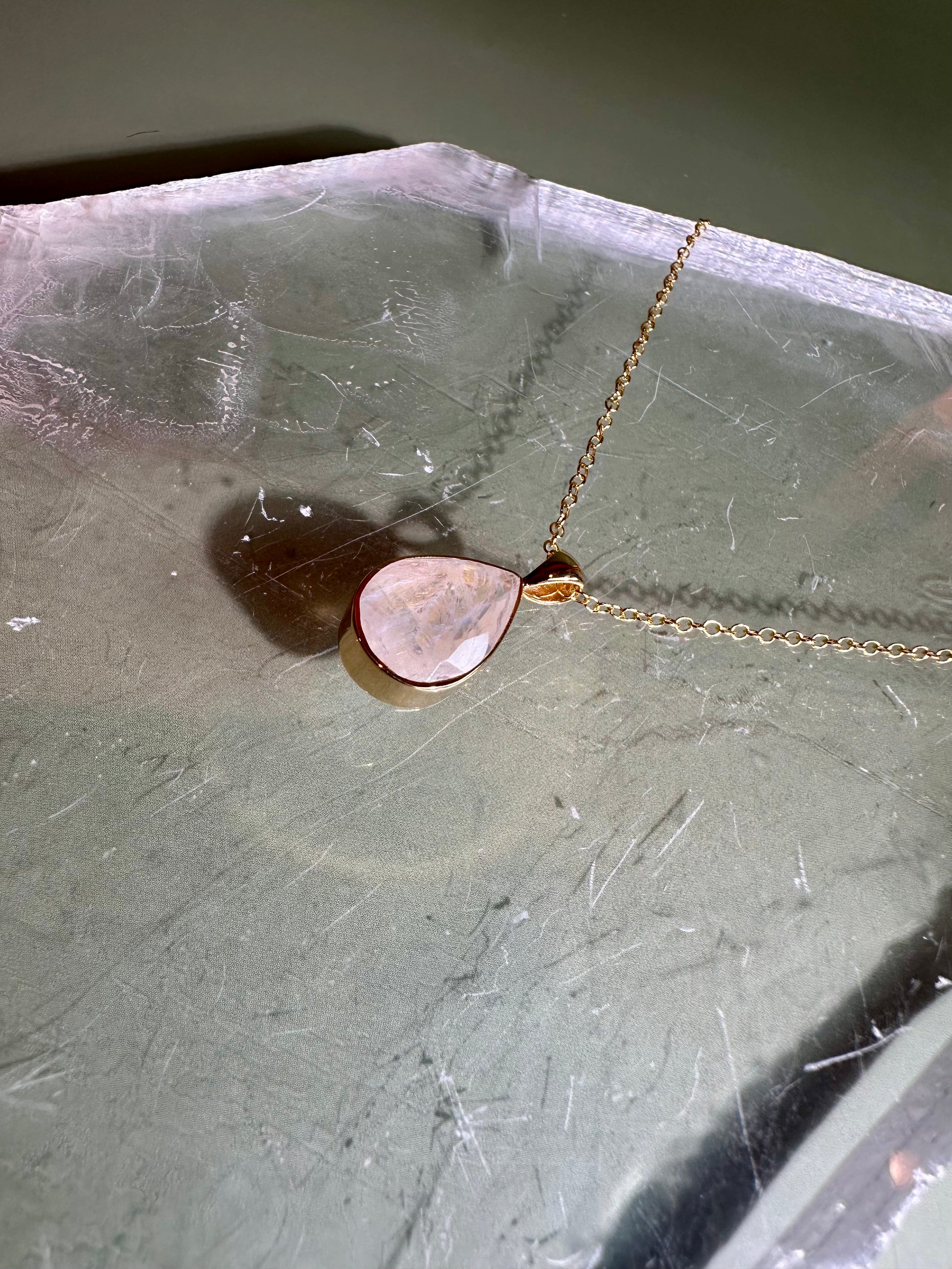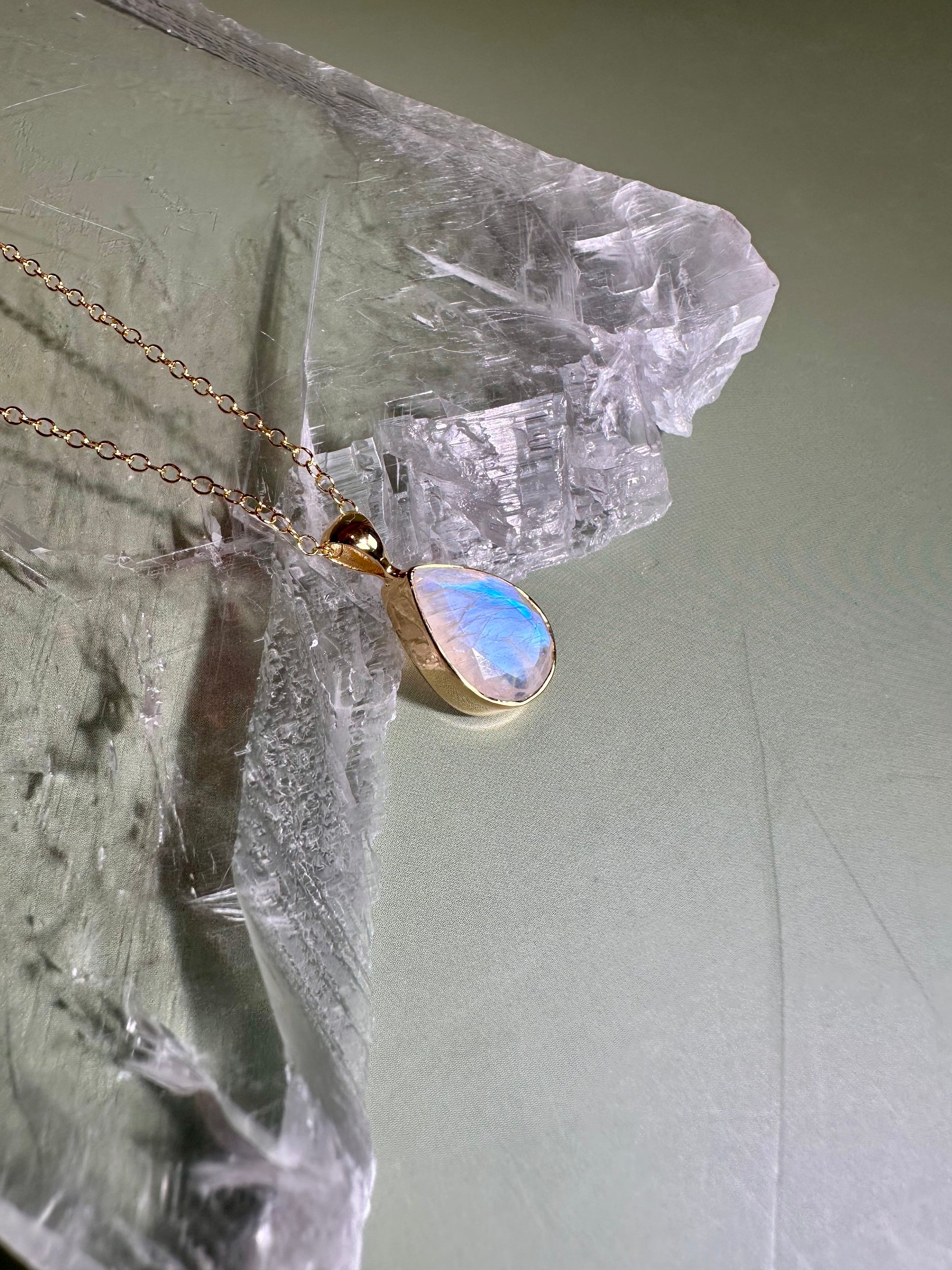 Faceted pear-shaped Rainbow Moonstone promotes intuition, feminine energy, and emotional balance. Elegant gold vermeil chain makes it perfect for daily wear, layering, or gifting to someone special.