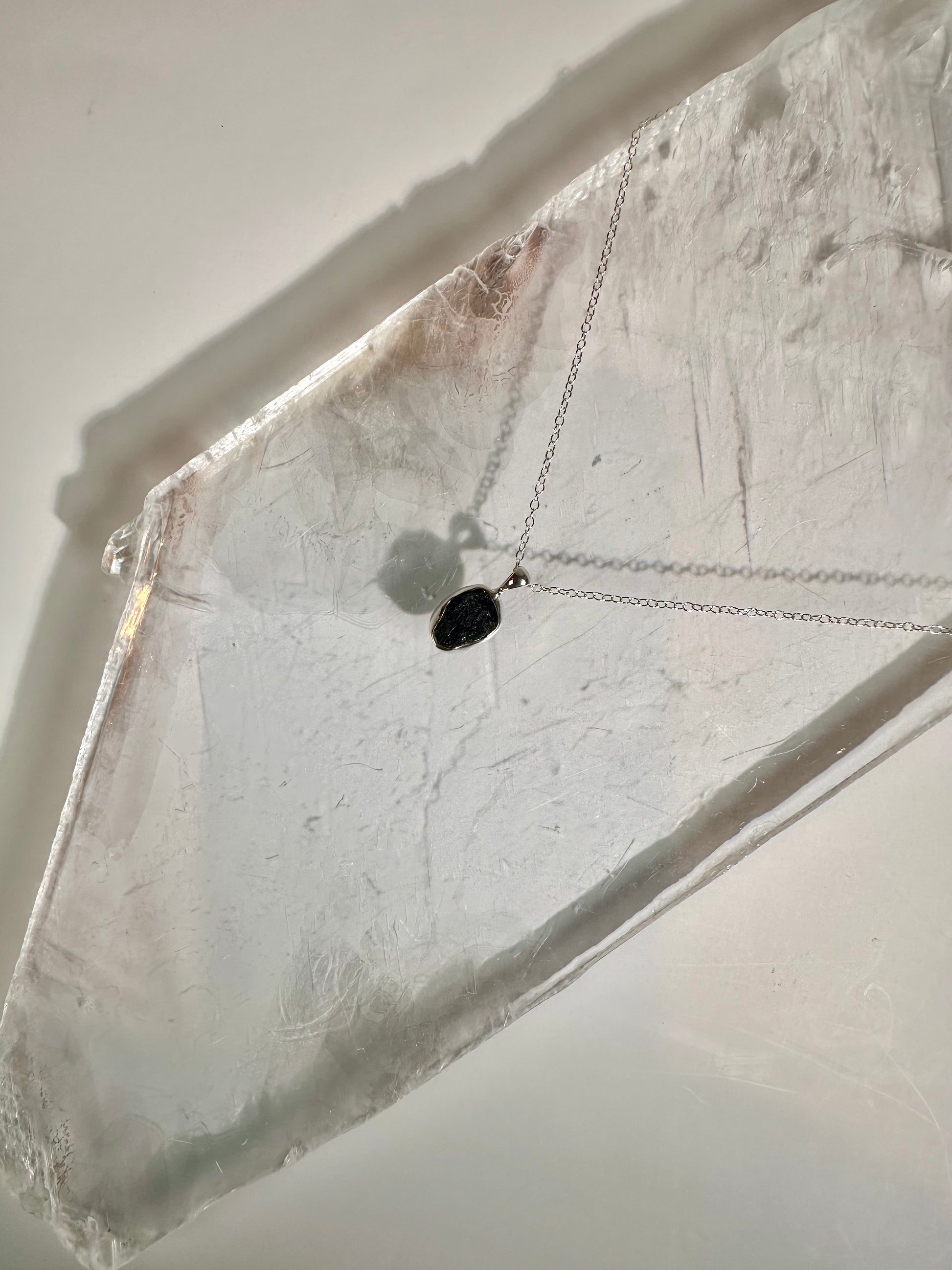 Rough Black Tourmaline protects, grounds, and balances energy. Polished sterling silver chain adds elegance, perfect for daily wear or gifting.