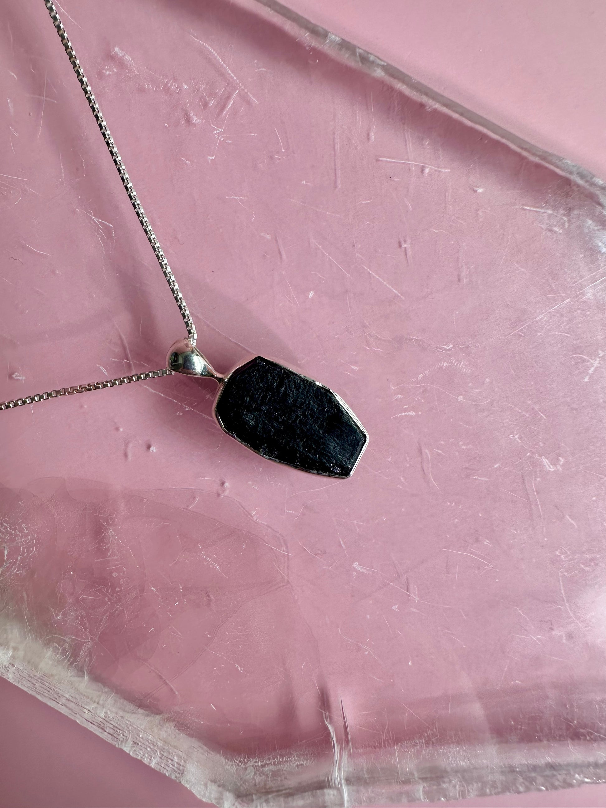 Rough Black Tourmaline is a powerful stone for protection, grounding, and energetic balance. Paired with a polished sterling silver chain, this piece brings elegance and intention — perfect for daily wear or thoughtful gifting.