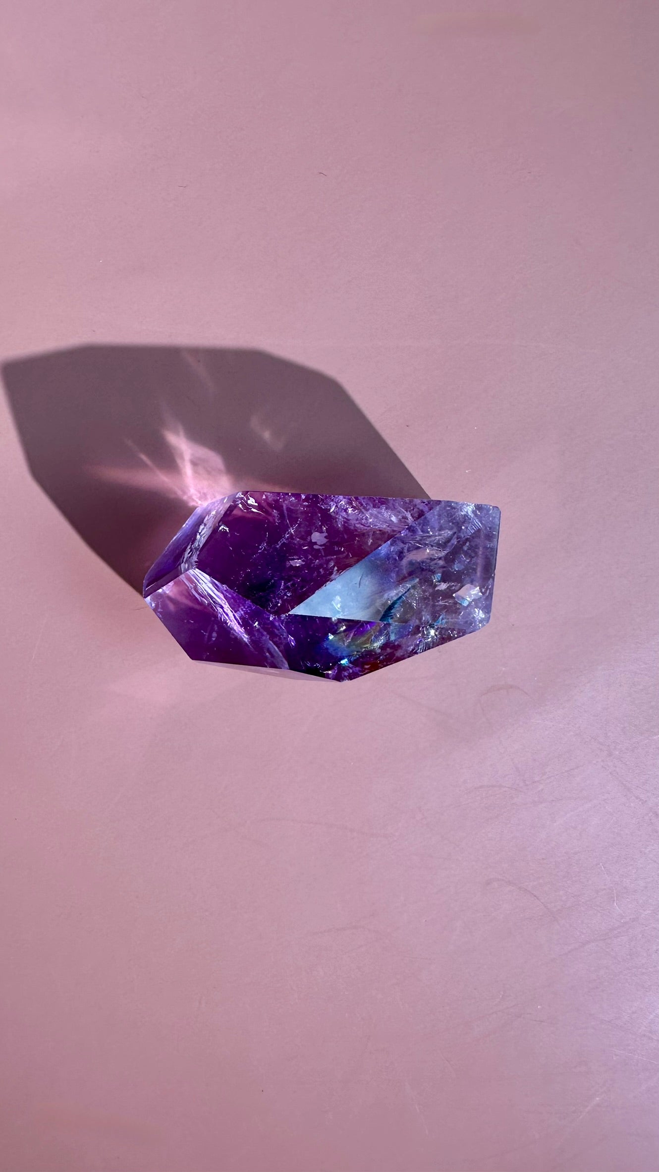 This piece features a fuller formation with rich purple tones and a dynamic gusher structure that feels both cleansing and energizing.