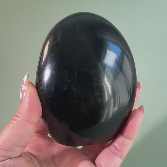 This polished Black Tourmaline freeform features a refined silhouette with natural variations that highlight the stone’s raw strength and beauty. Designed to stand upright, it brings both visual impact and stabilizing energy to any space.