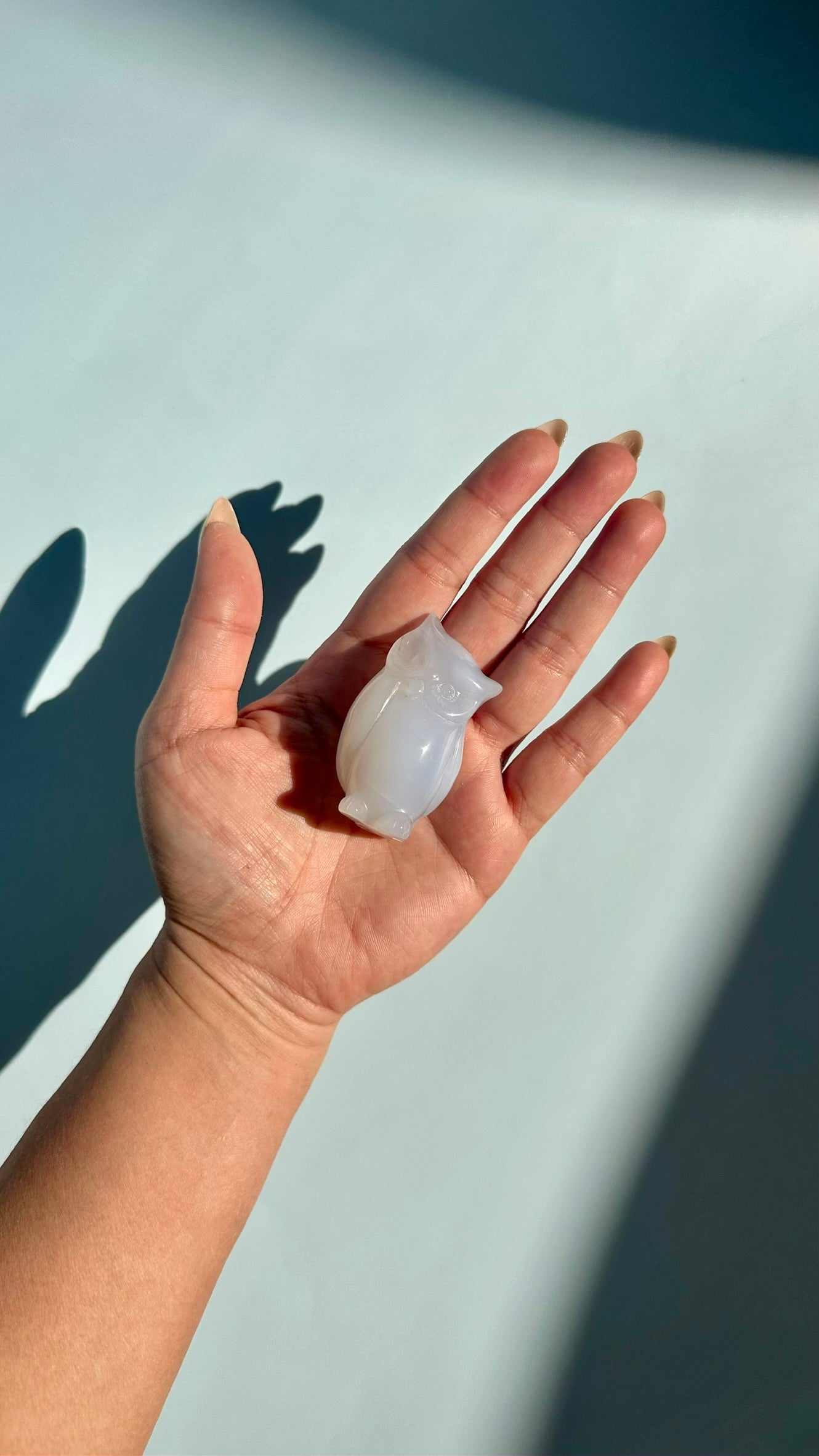 You will receive one Blue Chalcedony Owl Carving in your selected size: Large or Small.