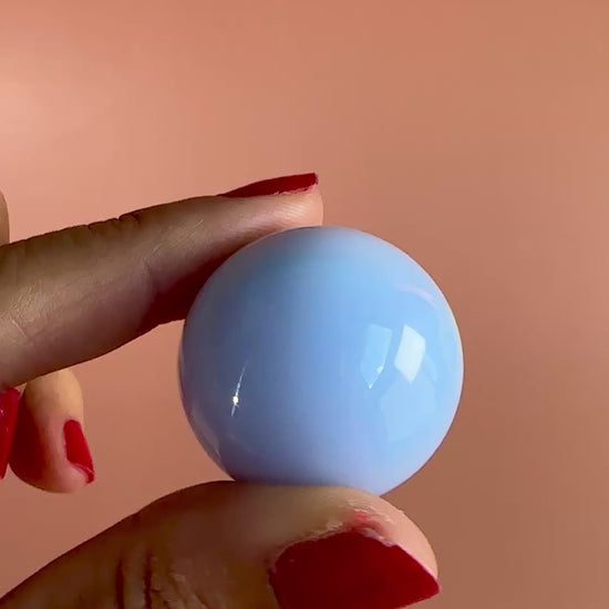 Soft and soothing, Blue Chalcedony brings tranquility and emotional balance. Its gentle blue tones help quiet the mind and promote honest, heartfelt communication. Compact and portable, this sphere is perfect for carrying, placing on a nightstand, or using as a calming companion throughout the day.