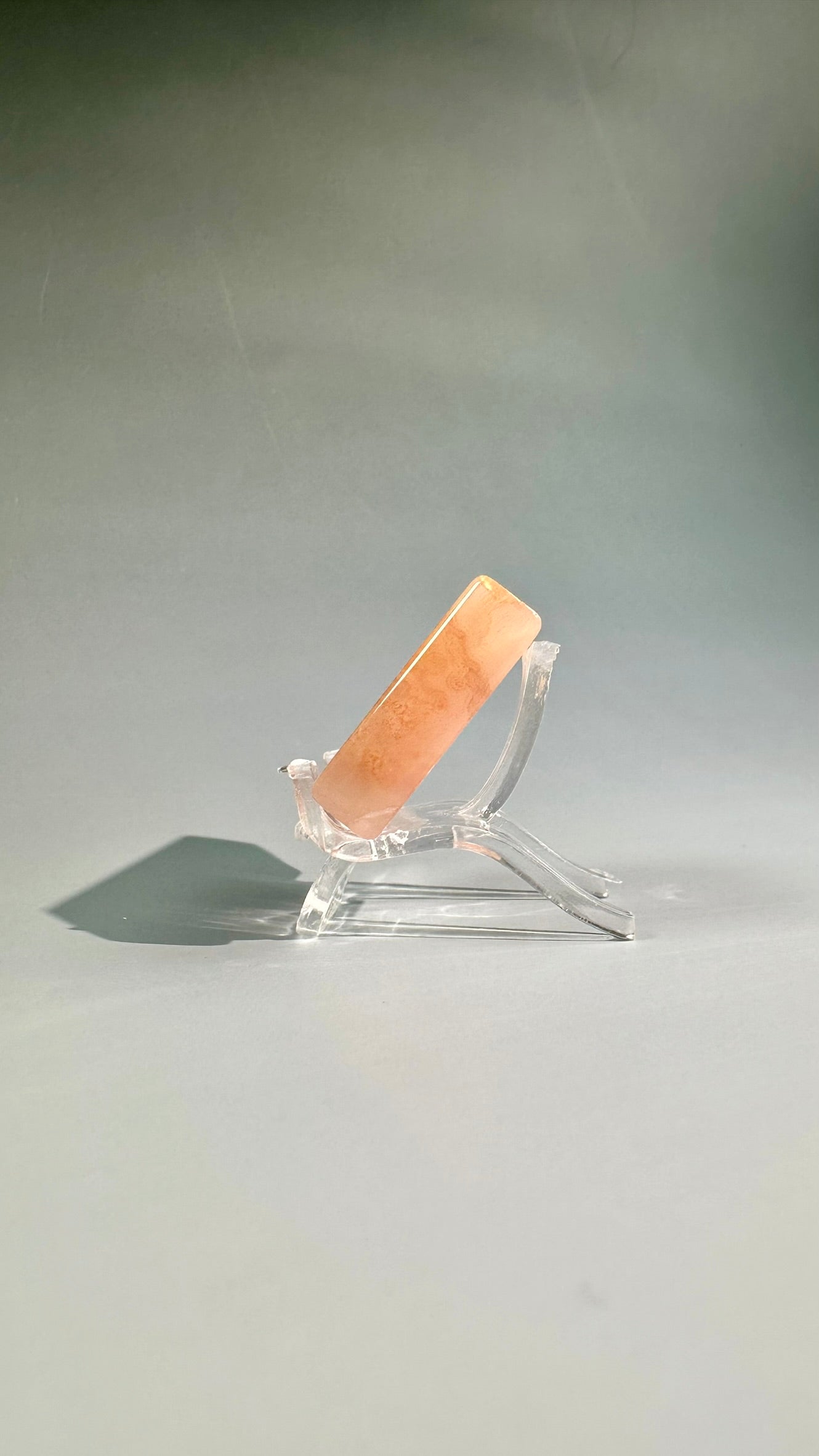 This slab features soft blush tones with delicate flower-like inclusions, shaped into a “window” that symbolizes clarity, vision, and looking forward into new beginnings. The polished surface highlights the stone’s natural blooming patterns.