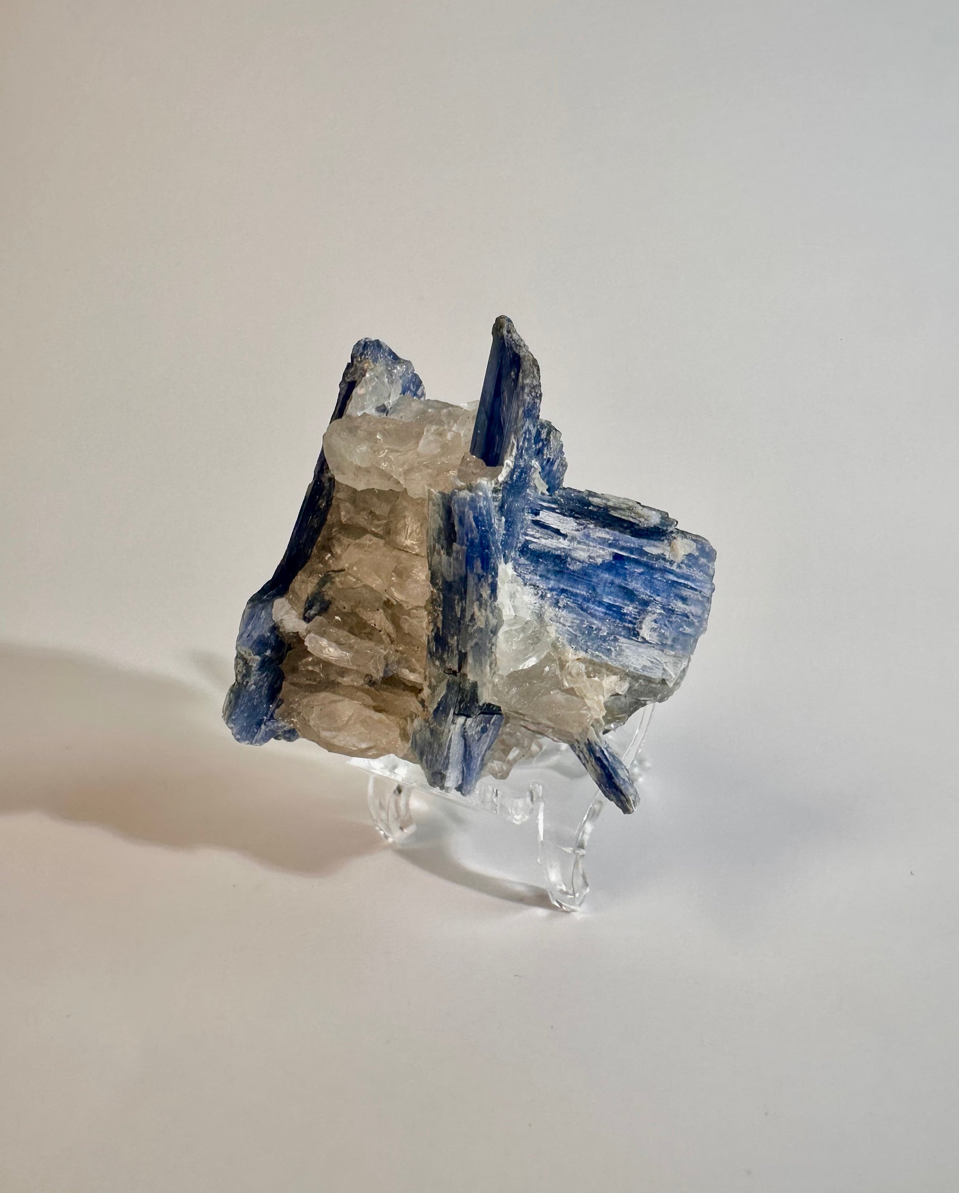 Hand-selected Kyanite in Quartz clusters combine calming grounding energy with Clear Quartz amplification. Perfect for meditation, energy work, or as a natural, eye-catching display piece.