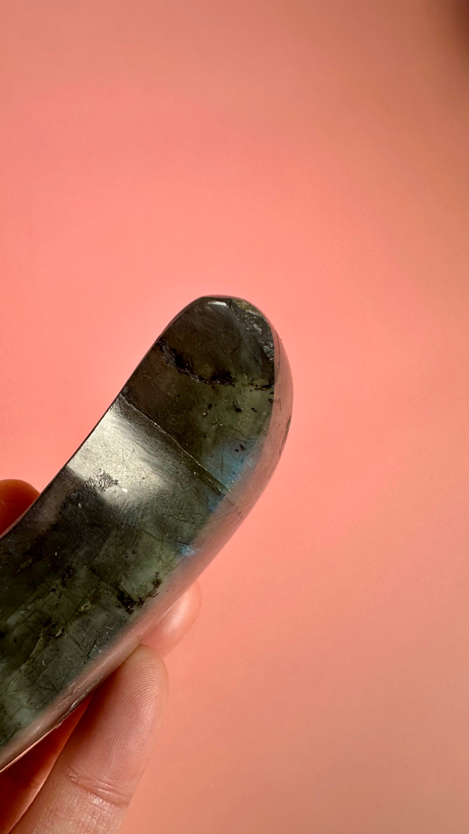 You will receive 1 Perfectly Imperfect Large Blue Flash Labradorite Crescent Moon – Option A misfit, the exact piece shown.