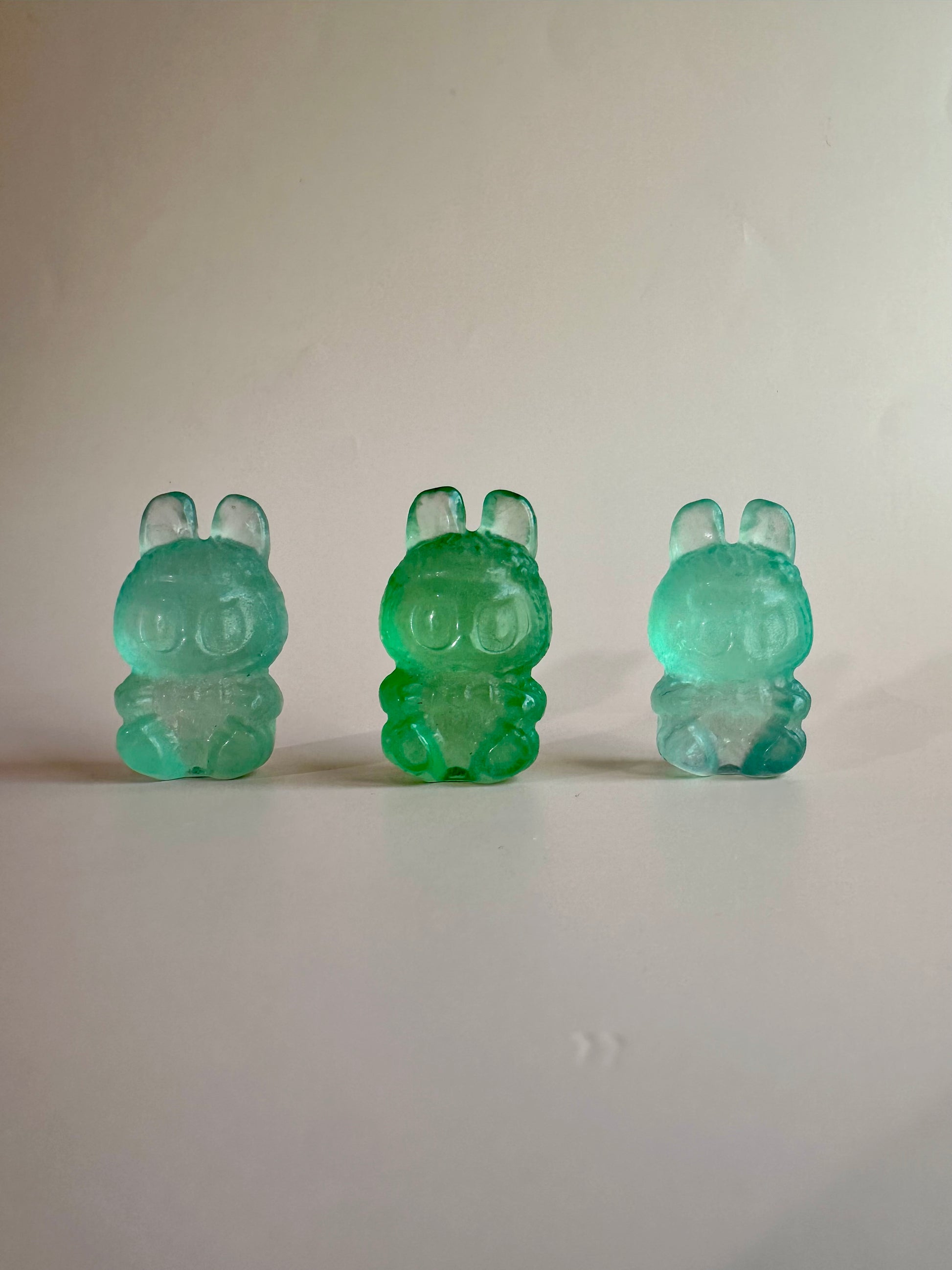 You will receive 1 intuitively chosen Light Green Fluorite Sitting Lafufu Kawaii Forest Spirit Figurine Carving.
