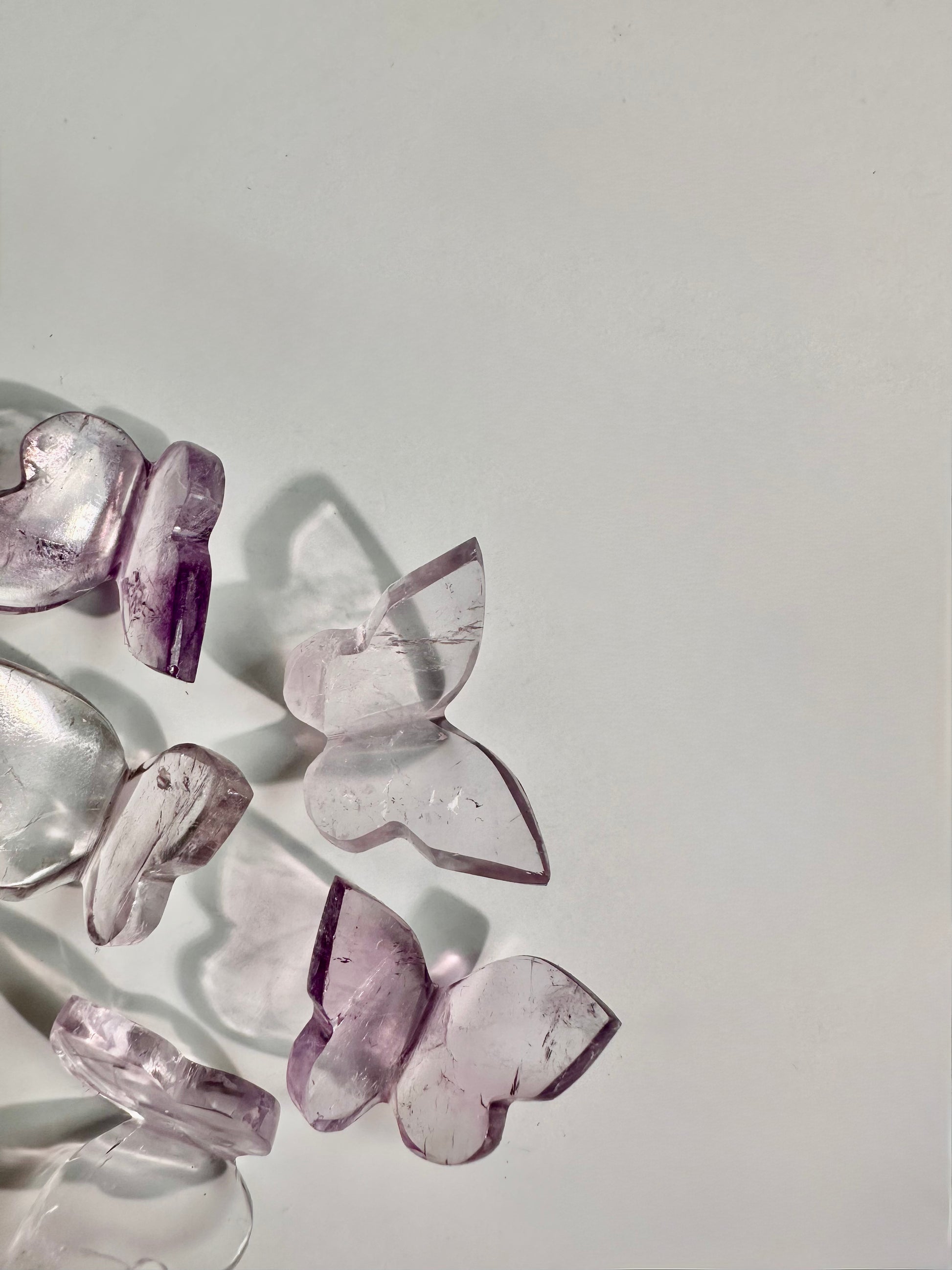 Amethyst promotes calm, balance, and love. Each butterfly is delicately carved to highlight the natural beauty of Amethyst, offering calming, heart-centered energy.