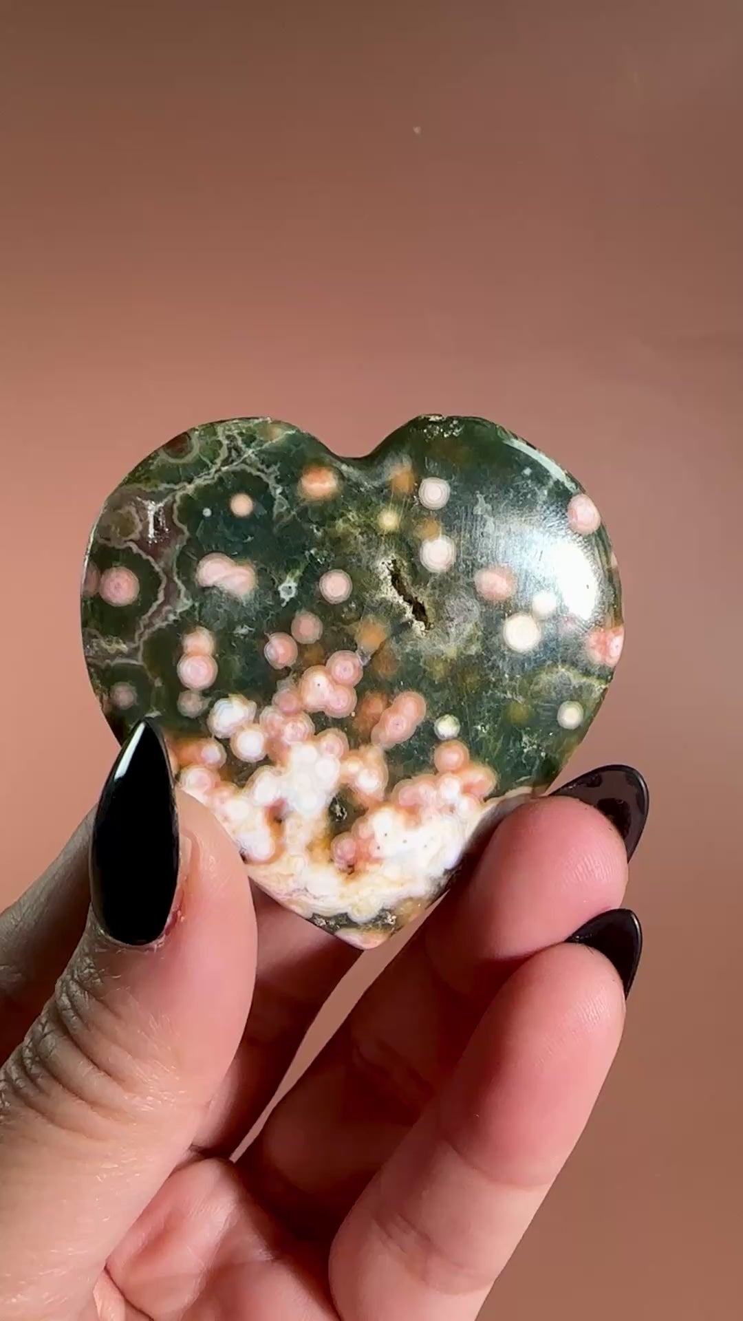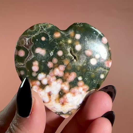 You will receive the exact Ocean Jasper Heart – Option C, as pictured. This heart-shaped Ocean Jasper piece highlights unique orbs and natural color variations, making it a one-of-a-kind addition to your collection.