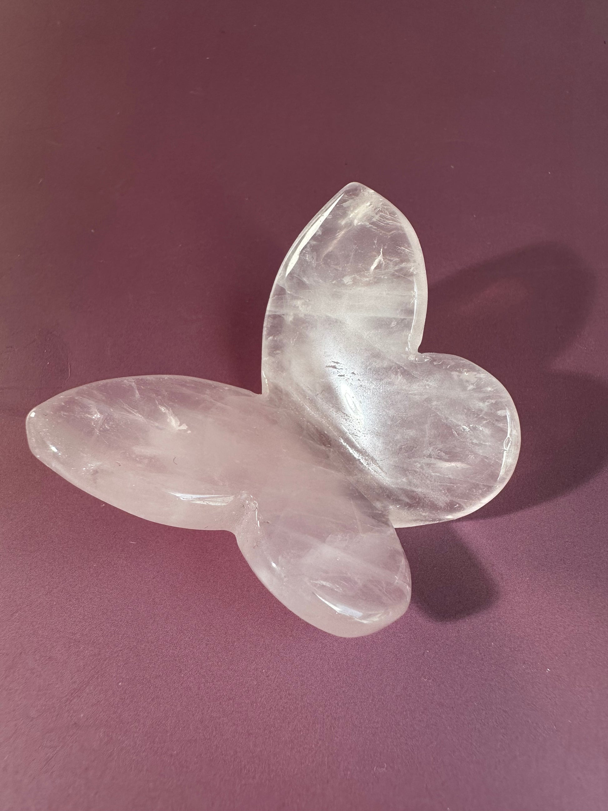 - 3D Rose Quartz Butterfly Carving (Width: 63.5mm 2.5 in, Height: 50.8mm 2 in)