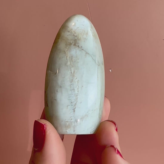 You will receive 1 intuitively chosen Polished Moonstone Standing Freeform, in size Large, Medium, or Small.