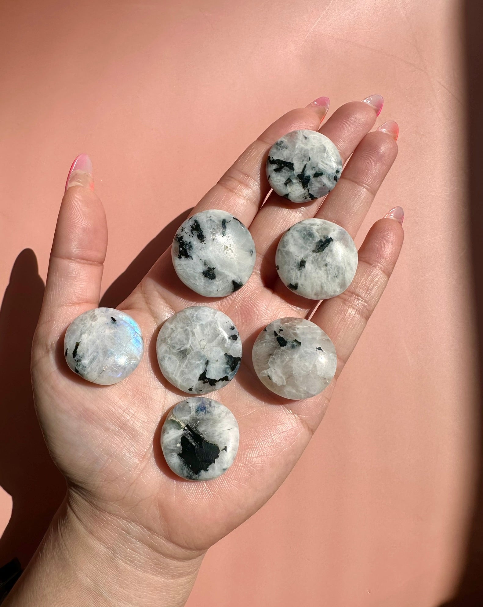 You will receive 1 intuitively chosen Rainbow Moonstone Mini Flat Palm.