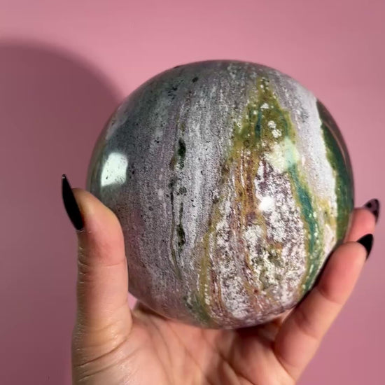 You will receive the exact Sea Jasper Sphere (Statement Piece), as pictured. Polished to highlight ocean-inspired patterns.
