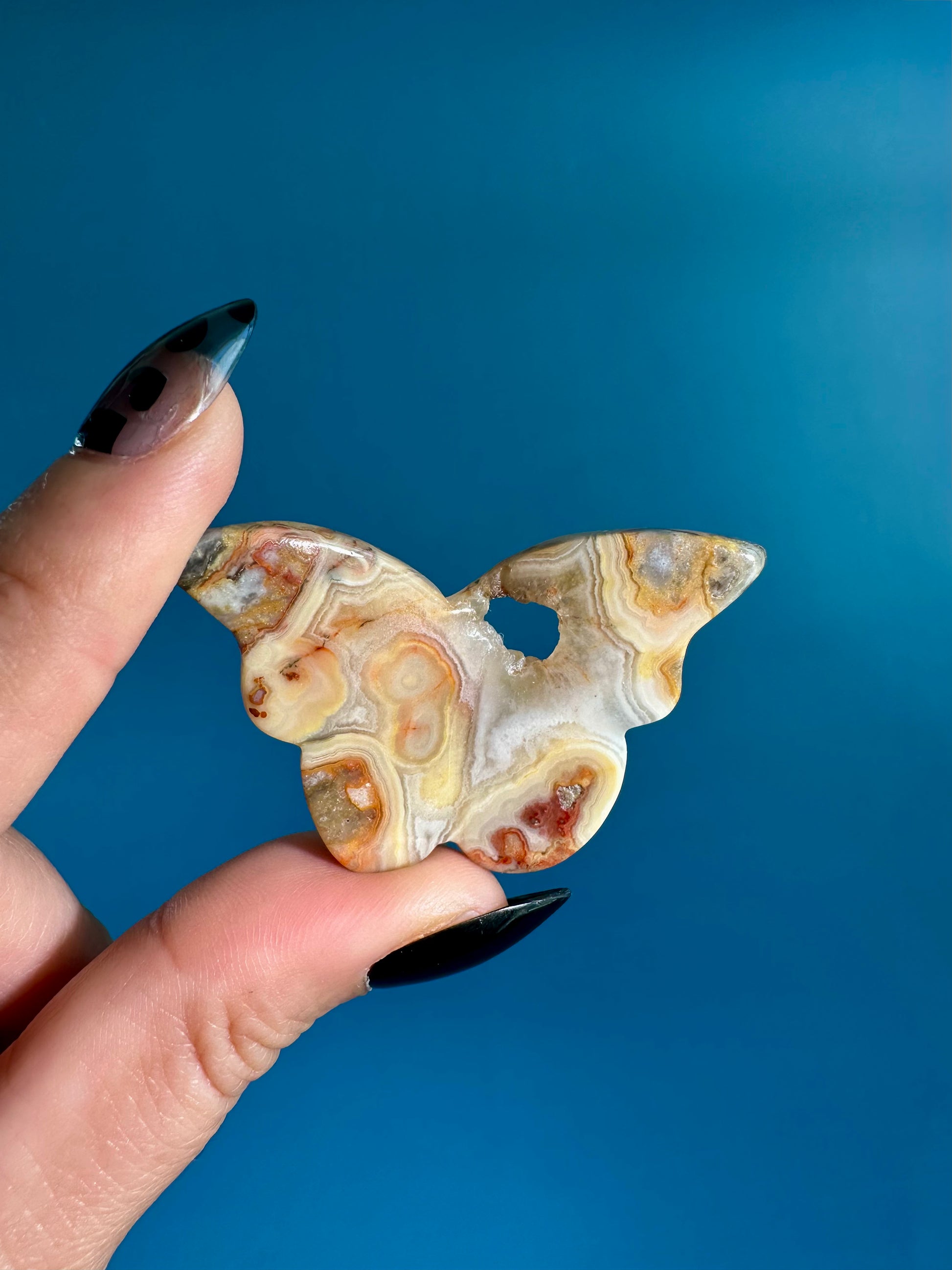 You will receive 1 intuitively chosen Small Yellow Crazy Lace Agae 3D Butterfly Carving. Bright patterns create cheerful movement.
