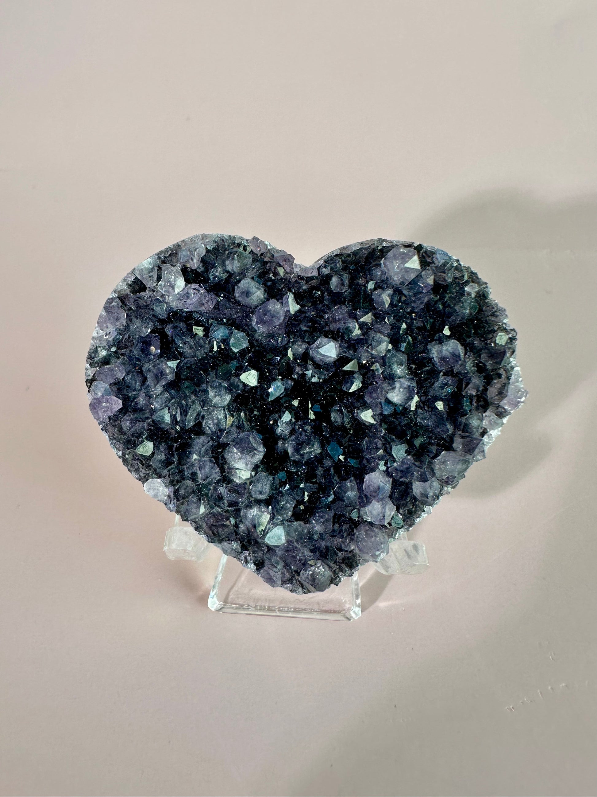 Sparkling with natural druzy texture, this heart promotes calm, intuition, and emotional clarity. Its compact size makes it perfect as a display piece or pocket stone, while the heart shape encourages love, compassion, and gentle energy flow.