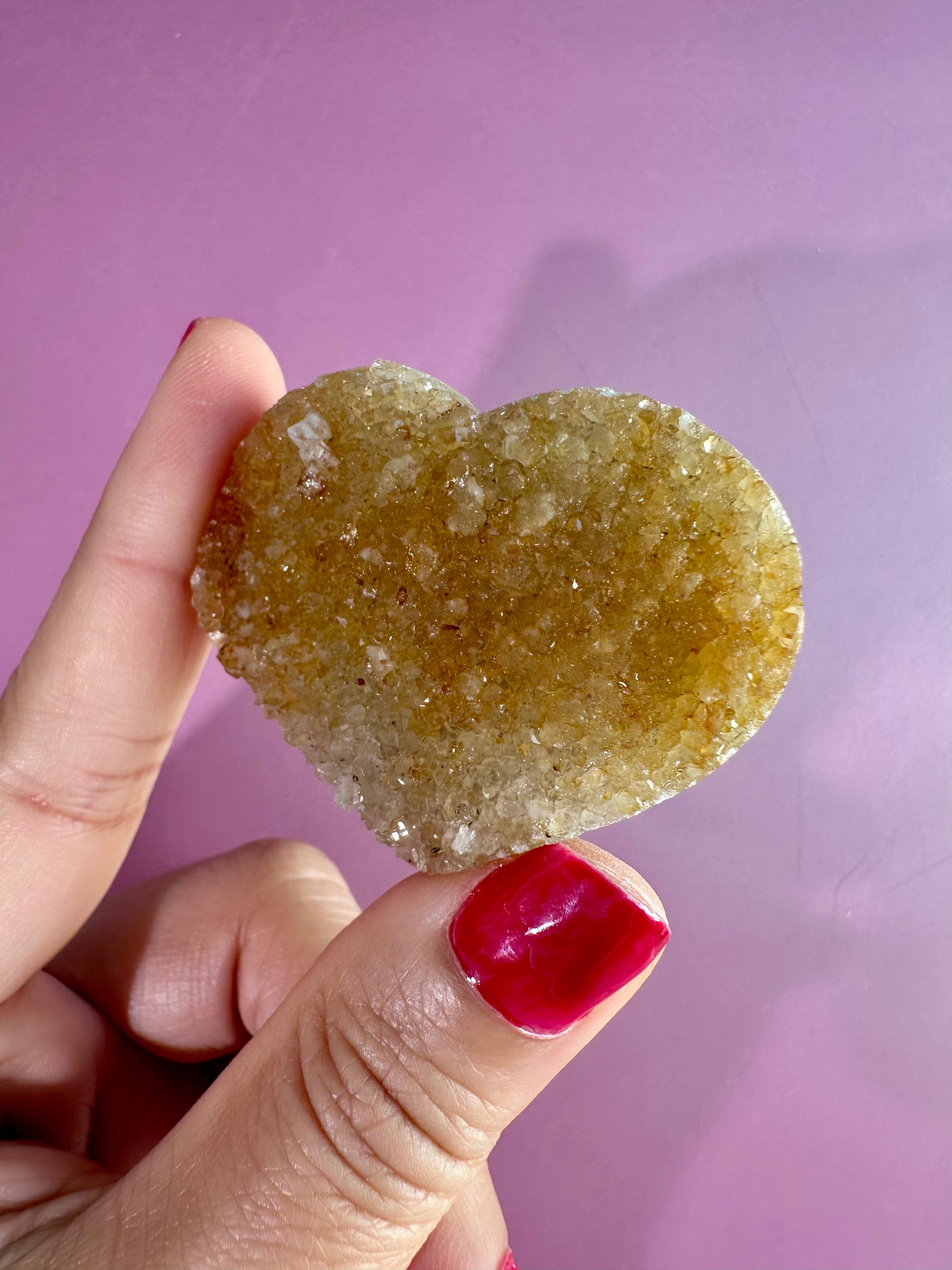 Radiating druzy shimmer, this heart supports love, compassion, and gentle energy flow while promoting clarity, calm, and intuition. Ideal for collection or carrying with you