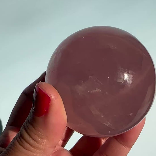 A gentle symbol of the divine feminine, this sphere carries soothing pink tones with a brilliant starburst sheen. It fosters kindness, compassion, and emotional harmony while inspiring grace and empathy in relationships.