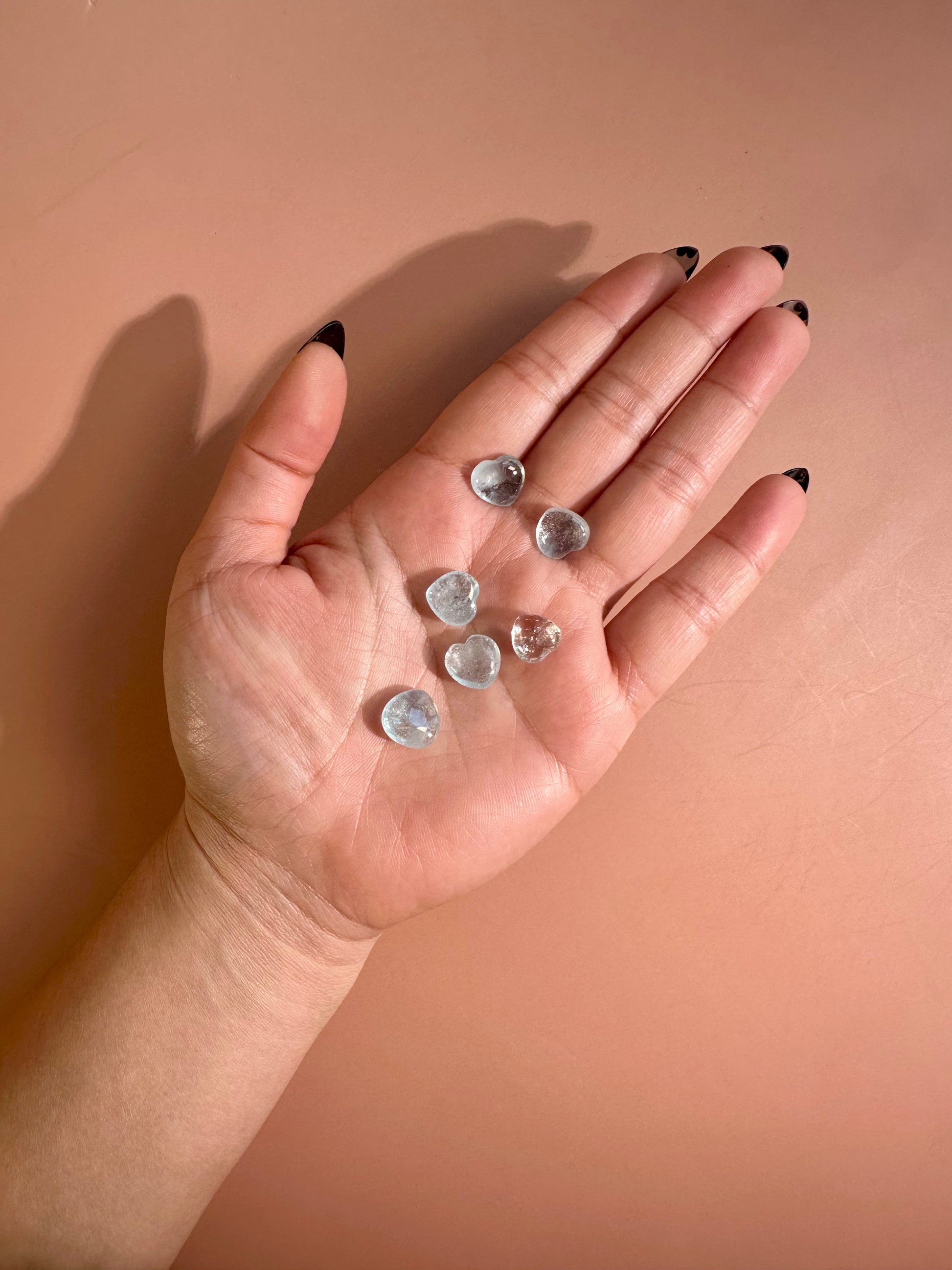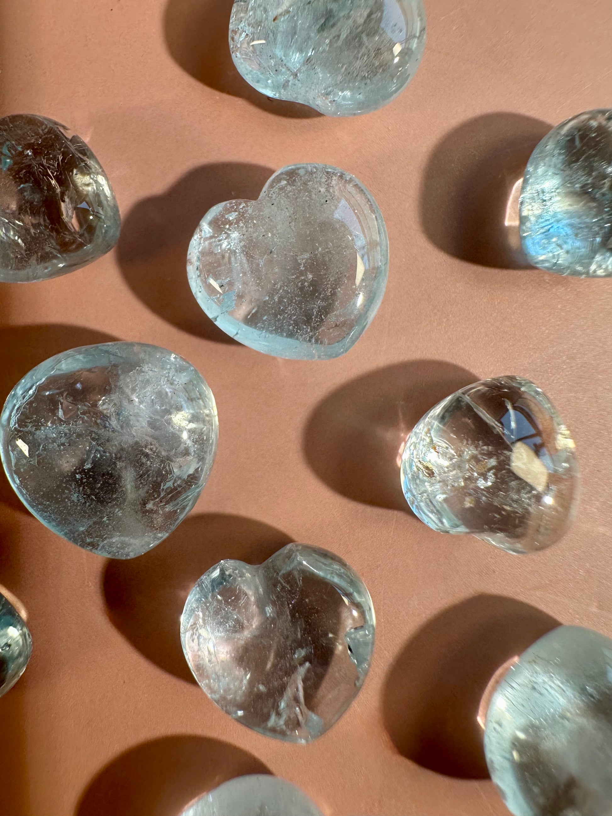 You will receive 1 intuitively chosen Teeny Aquamarine Heart. Soft blue tones and a heart shape create a gentle, comforting crystal.